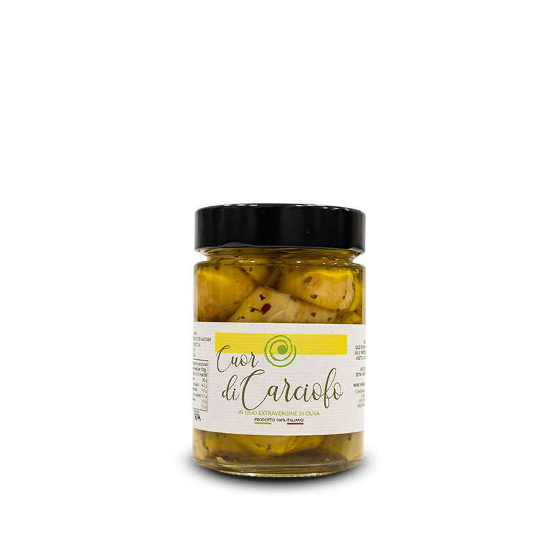 Zutaten: Artischocken 65 %, natives Olivenöl extra (italienischer Herkunft) 34 %, Salz, Chili, Petersilie, Weinessig. Enthält Spuren von Sulfiten