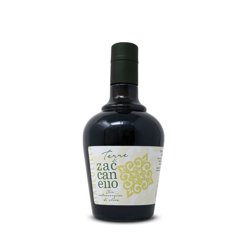 Die landwirtschaftlichen Betriebe Terre di Zaccanello erstrecken sich im Nordosten der Küste von Agrigento in Racalmuto. Ein Land, das reich an Zitrusfrüchten, Mandeln, Johannisbrotbäumen, Granatäpfeln und Kaktusfeigen ist. Dominierend ist jedoch der Olivenhain mit den Sorten Nocellara del Belice, Biancolilla, Gioconda und Bella di Spagna, die sich jeweils durch unterschiedliche Aromen und Geschmacksrichtungen auszeichnen. Das native Olivenöl extra Biancolilla repräsentiert die ganze Typizität dieser autochthonen Sorte mit uralter Abstammung und Düften, die von Sizilien sprechen.