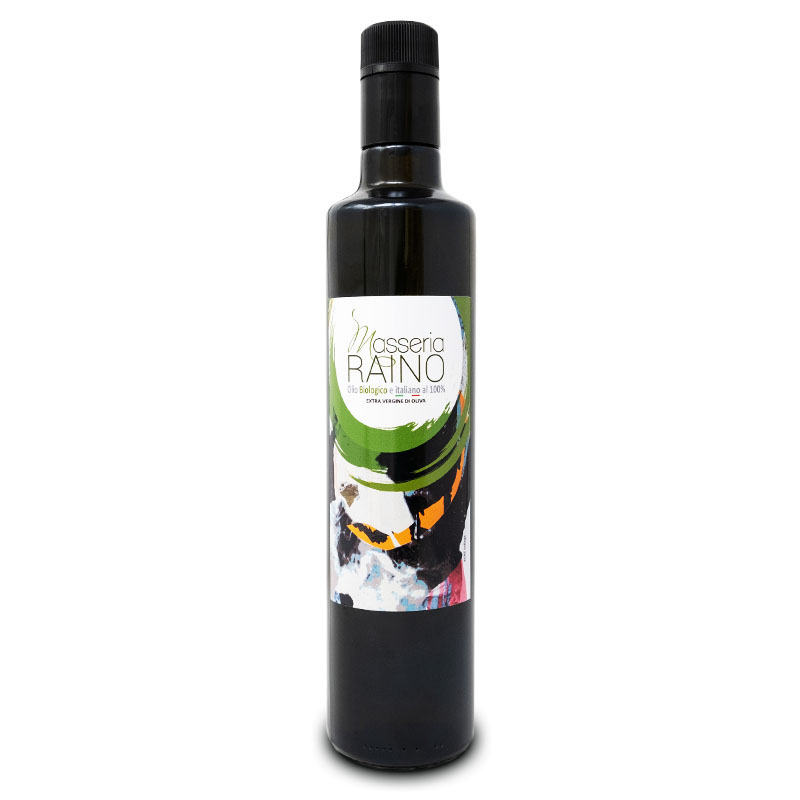 Ein 100 % natives Olivenöl extra Masseria Raino, vom Olivenhain bis zur Abfüllung, eine Lieferkette, die mit dem Gebiet und der Sorte Itrana verbunden ist, die für ihre starke Tomatennote bekannt ist.