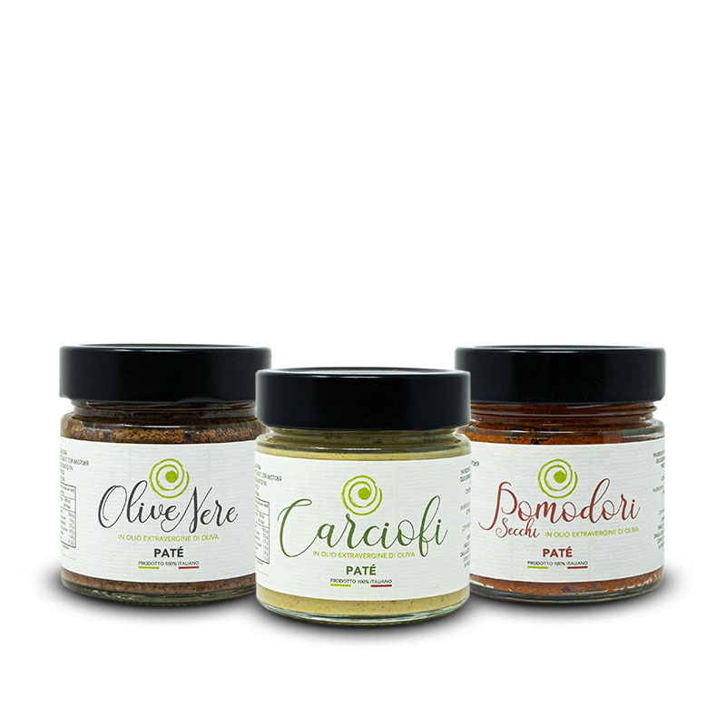 Das Paté-Trio, das wir anbieten, besteht aus: schwarzen Oliven, Artischocken und getrockneten Tomaten. Eine ideale Lösung für ein schnelles Abendessen, um Gäste zu unterhalten oder ein Buffet zu diversifizieren. Hervorragend zum Würzen eines ersten Gangs, zur Zubereitung köstlicher vegetarischer und veganer Sandwiches oder Fingerfoods. Ein kleiner Tipp: Wenn Sie sie zum Würzen von Nudeln verwenden möchten, denken Sie immer daran, ein Glas Wasser beim Abgießen aufzubewahren, es hilft Ihnen, wenn es zu trocken ist.